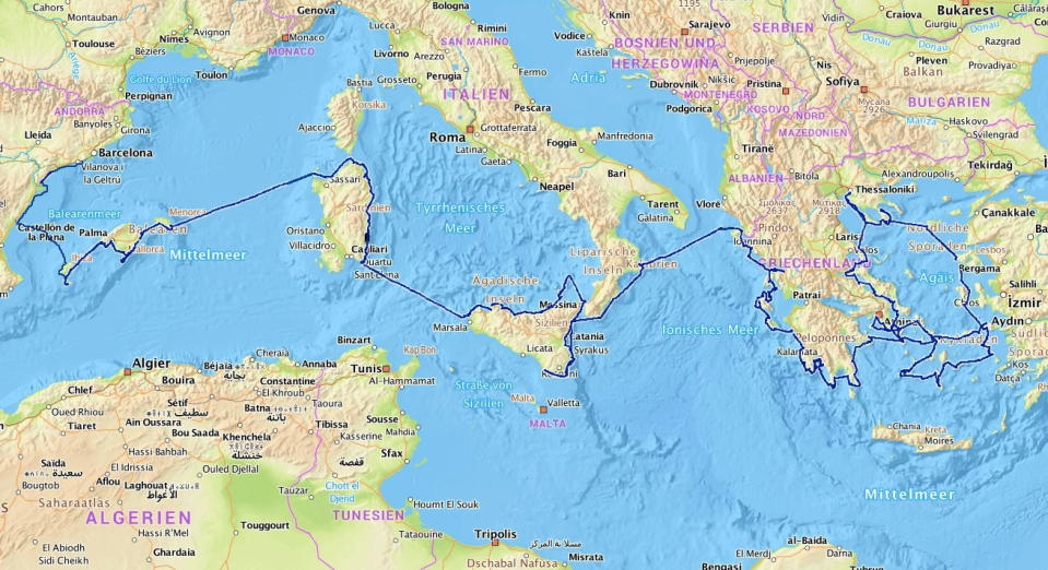 Unsere seit 2022 besegelte Route mit unserer „Amigo del Mar“