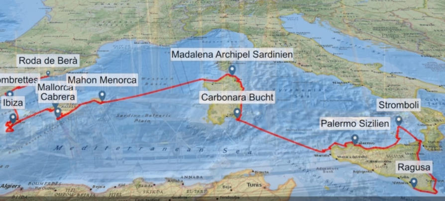 Start 09.05. in Roda de Bara, Spanien - Ende 03.09.2022 in Marina di Ragusa, Sizilien ca. 1.600 sm