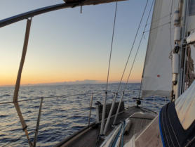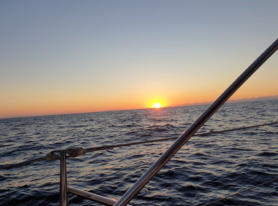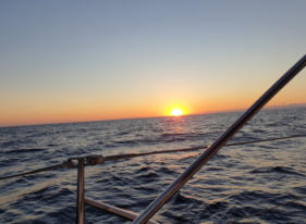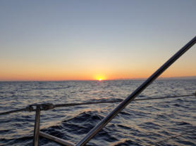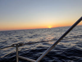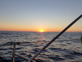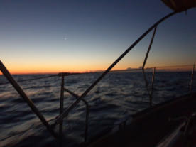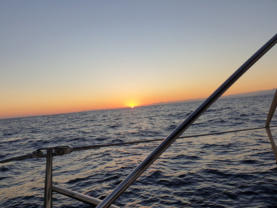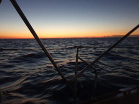 dinien. Es ist stockdunkel, aber wir haben tollen Wind. Einmal die Segel gesetzt und los durch die Nacht in den Morgen hinein - dem Sonnenaufgang entgegen:-))))