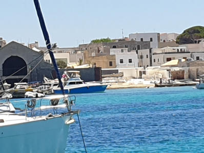 Das ist der gleichnamige Hafen der kleinen Insel Favignana. Alles wie im Bilderbuch: Hafen mit Fährverkehr,