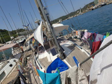 Vorher muss noch schnell Brot gebacken werden, Wäsche gewaschen und getrocknet. Aufbruch am 18. Juni 2022 nachts um 23 Uhr von Mahon, Menorca nach Sar-
