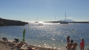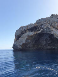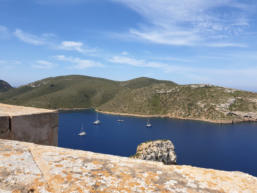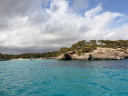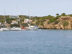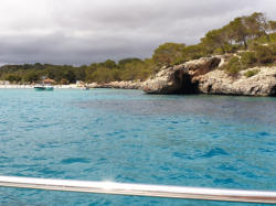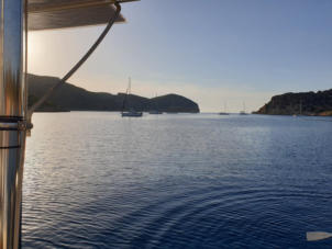 Wir segeln zu der Bucht Galdana von Menorca. Hier will uns ein Segler treffen, der mit seinem Catamaran dort ankert.