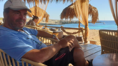 Zur Belohnung landen wir ein Tag später in der tollen Strandbar mit Blick aufs Boot.