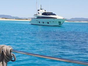 Wir liegen vor Formentera. Es gibt sooo große Schiffe, wem die wohl immer gehören? Im Internet