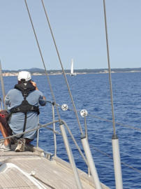 der Zahl. Durch eine Regatta müssen wir durchsegeln. Wir freuen uns wieder, dass unser Boot schön läuft.