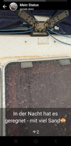 In der Nacht hat es viel geregnet mit viel Sand. Wenn wir aus unserer