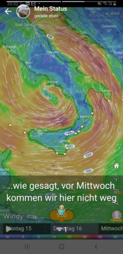 Richtung Kalabrien auf. Immerhin soll es nicht regnen - jedoch haben wir kein Wind zu