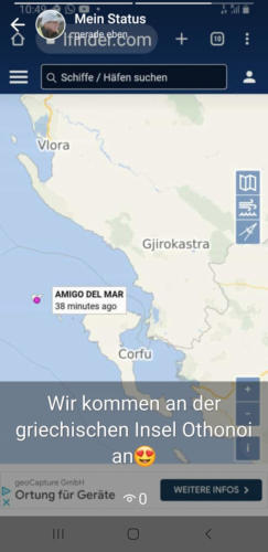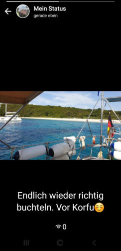 Wir treffen mit viel Motorhilfe in Korfus Norden in einer zum Wind passenden ge-