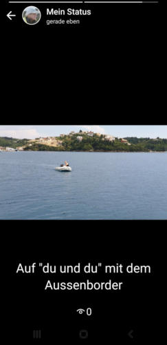 ich wieder einmal, mit unserem Dinghi zu fahren. Der Aussenborder läuft quasi