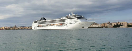 Die MSC macht uns in Syrakus noch schnell Platz, damit wir ankern können.