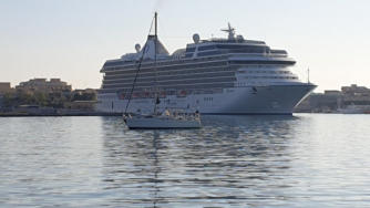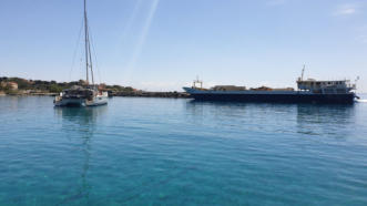 Früh Morgens noch sehen wir in der Ankerbucht ein U-Boot (größenteils aus dem Wasser), welches offensichtlich zum Tanken nach Augusta fährt.