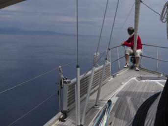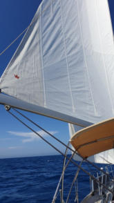 die Segel zu arg wegen der Wellen. Ausserdem sind wir auf Vorwindkurs deutlich langsamer. Wir müssen unbedingt ohne