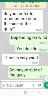 Whatsapp werde ich dann gefragt, wie wir lieber anlegen wollen. Ich schreibe, dass sie entscheiden sollen - je nach Windver-
