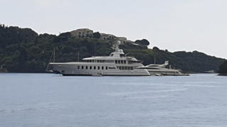 Im Laufe des Tages sind heute 2 mittelgroße Motoryachten aufgetaucht. Eine davon ankert in Sichtweite von uns. Das Boot hat immerhin 8 Gäste an Bord und
