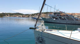 Der Marinero hat noch 2 weitere Helfer, denen wir unsere Festmacherleinen zuwerfen. Letztlich liegen wir längsseits am