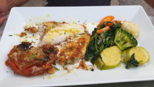 Wir sind in Marzamemi im Hafen und essen Abends Gemüse, Kartoffeln und Thunfisch aus der in Marzamemi