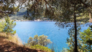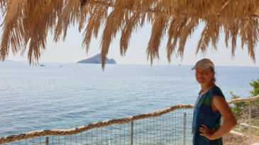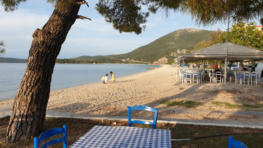 Das ist der Blick rüber zur Insel Marathonisi. Auch diese Insel gehört zu dem geschützen Bereich, weil