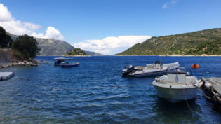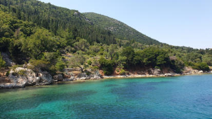 Da die Windstärken in den WetterApps reduziert werden, fahren wir weiter an der Westküste von Kefalonia Richtung Süden und ankern schließlich vor demStrand