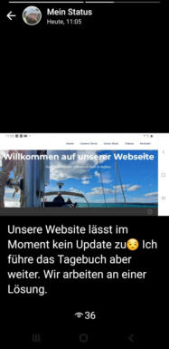 Abends, als ich unser Tagebuch aktualisiere, stelle ich danach fest, dass alle neuen Tage bzw. Einträge nicht mehr auf unserer Website erscheinen. Ich