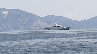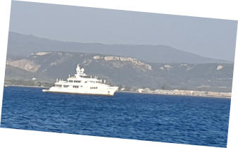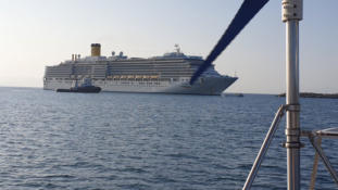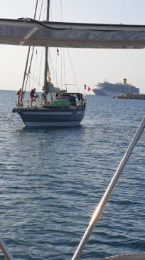 Schon morgens um 8 Uhr muss unser vor Anker liegender Nachbar dem einlaufenden Kreuzfahrtschiff weichen. Die Costa Delziosa will ihren Passagieren Ausflüge