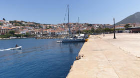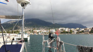 Kyparissia. 3 oder 4 Hafenschildkröten nehmen uns am Hafeneingang in Empfang. Wir machen längsseits fest und bekommen Unterstützung beim Festmachen
