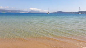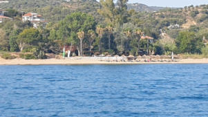 vor einem schönen Sandstrand und werden hier morgen ausgiebig baden. Bis nach Kalamata sind es gar nicht