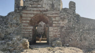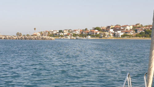 Auf dem Weg nach Katacolon warnt uns unsere Freundin Sandra vor dem Hafenbecken. Es sei dort eine alte Kette von nicht mehr vorhandenen Schwimmstegen