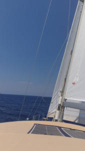 wieder firm zu werden. Es klappt gleich alles richtig und zu unserer Freude wirkt sich das gleich auf die Bootsgeschwindigkeit aus. So macht segeln doch Spaß!!! Wir