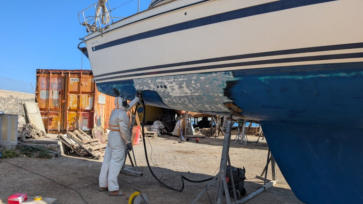 Dann können die Unterwasserschiffsarbeiten noch bei gutem und warmen Wetter ausgeführt und abgeschlossen werden.