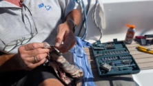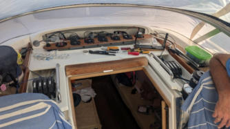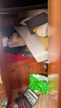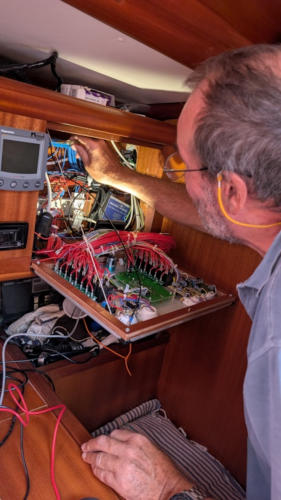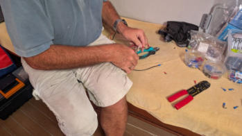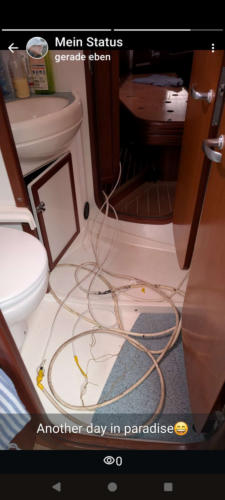 Martin bereitet sich für den Umbau unseres technischen Equipments vor. Montag gehts aufs Trockendock. Da liegt allerhand