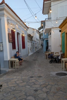 Der Abwechslung halber fahren wir Abends mit den Scootern in eine Taverne nach Karlovasi, die nur von