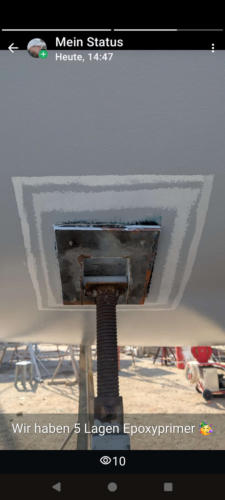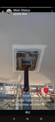 In einem passenden Wetterfenster gehe ich von Bord und schaue nach den gestern gestrichenen Stellen Epoxyprimer.