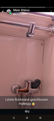 waschraum untergebracht) bei nicht zugezogenem Duschvorhang.