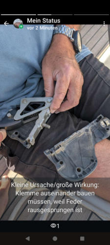 Vorsichtsmaßnahme! Bisher läuft unser Maschinchen wie ein Örgelchen immer prompt an. Wir wissen aber von einem anderen Paar,