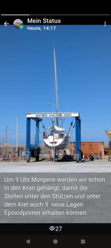 Und ja - wir haben nun den Termin für das Auskranen. Es ist schon Montag, also in wenigen Tagen. Das hatten wir gehofft.