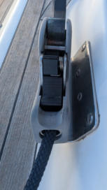 so durch. Das soll auch so sein, denn wenn wir die Großschot loswerfen müssen, dann soll sie auch durch die Klampe rauschen….