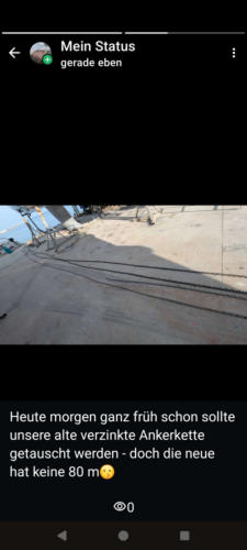 Wir lassen unsere komplette alte Ankerkette raus und dann stellt