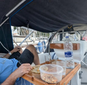 Nachmittags bekommen wir Besuch von Segelfreunden, die vor unserer Marina vor Anker liegen.