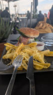 Restaurants am Platz. Danach spüle ich unser Schiff vom roten Saharasand ab und demontiere die Kuchenbude.
