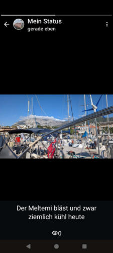 Der Meltemi gibt weiterhin sein Bestes. Im Boot wird es Nachts schon ganz schön frisch. Wenn wir nicht sowieso bald aufs