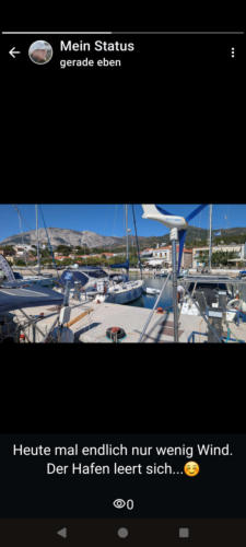 Es hat weniger Wind und so leert sich der Hafen und später kommen wieder neue Segelboote rein.
