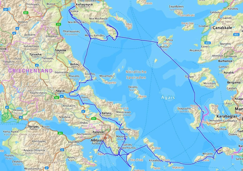 Unsere seit 2022 besegelte Route mit unserer „Amigo del Mar“